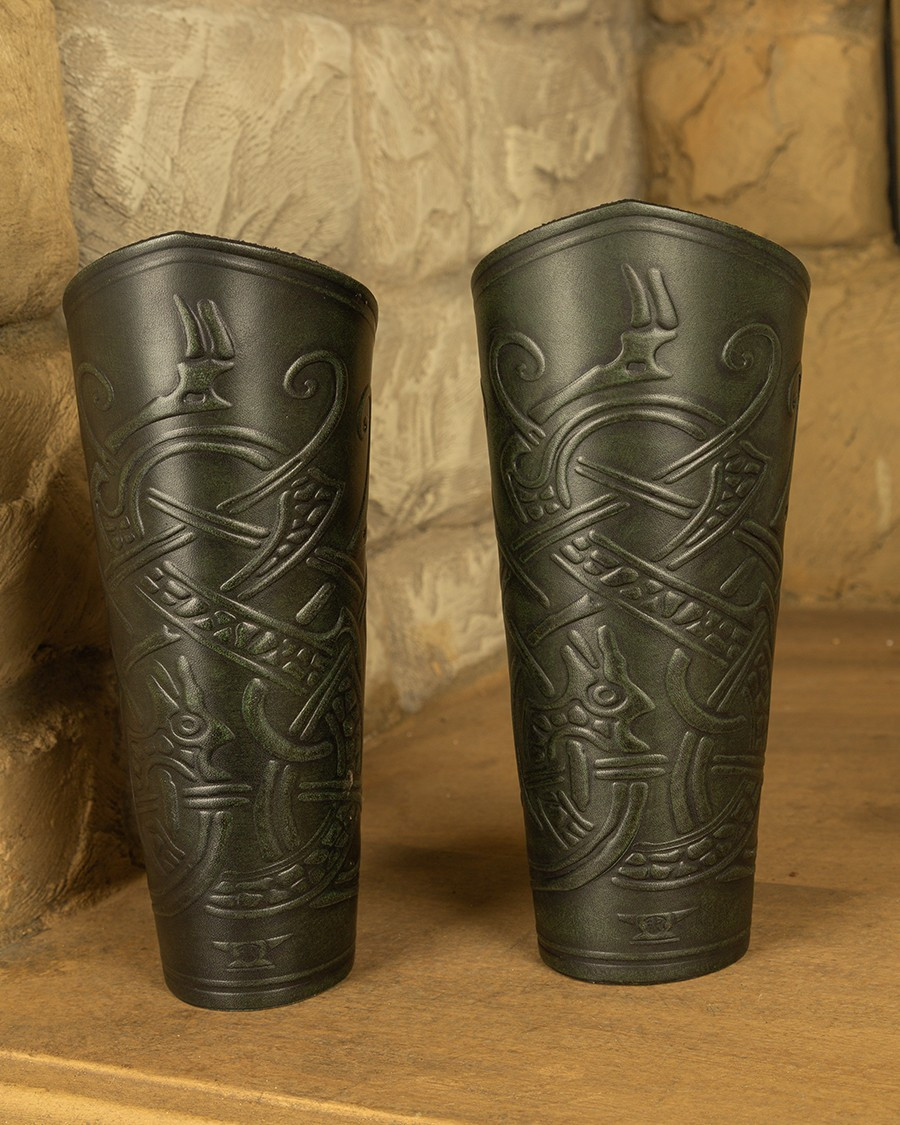 Braçadeiras medievais de guardabosques em pele, vermelho cereja
