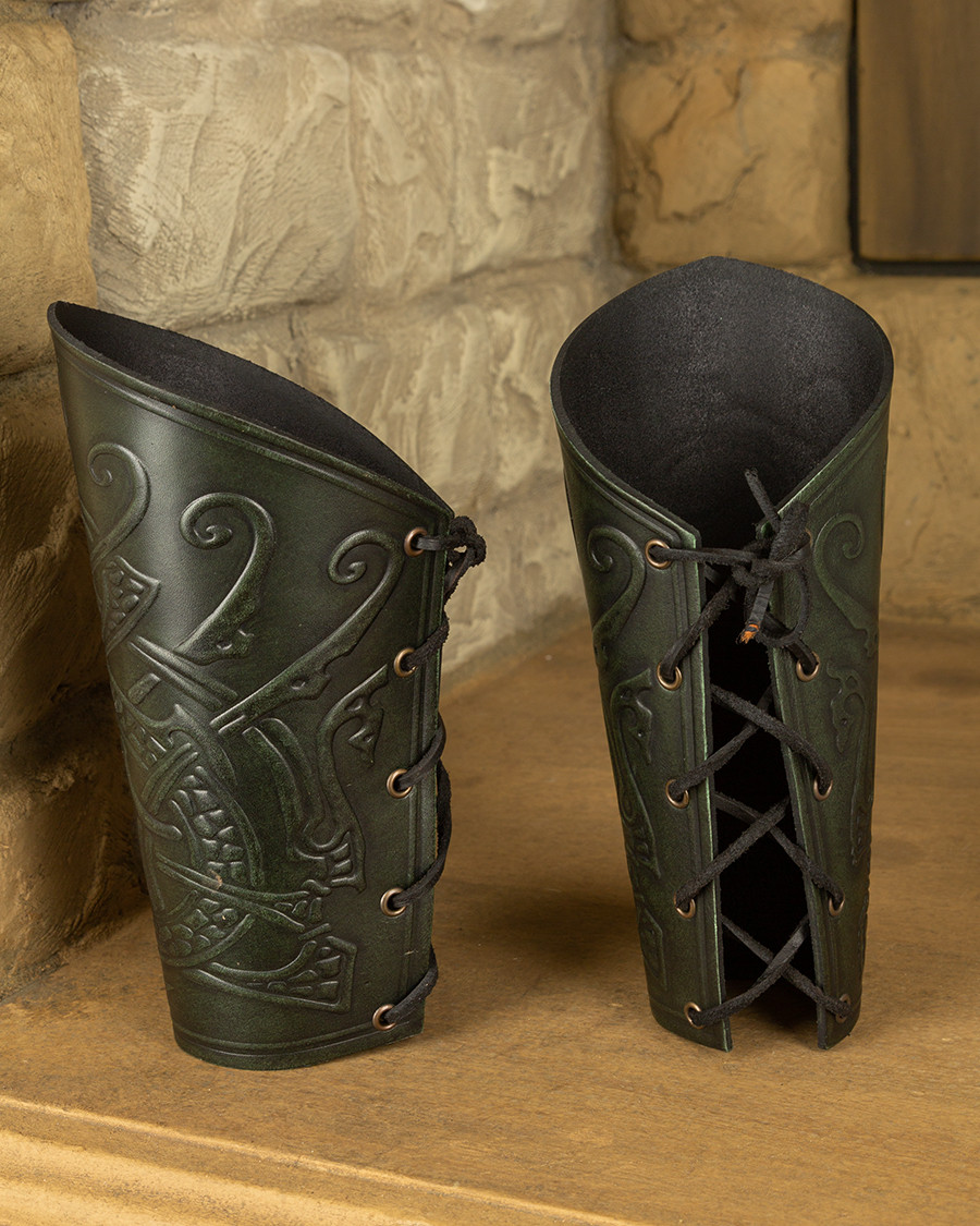 Pulseiras de fantasia de dragão em couro repuxado, verdes