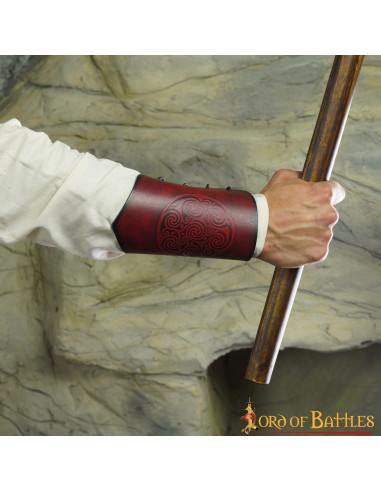 Os brazaletes de couro, modelo Brian, oferecem um design ousado que funde a estética celta e vikinga, irradiando força e resistência. Cada peça é elaborada com duas placas sobrepostas, o que garante sua durabilidade sem sacrificar uma aparência sofisticada que fará com que todos olhem para você na próxima batalha ou evento de LARP.