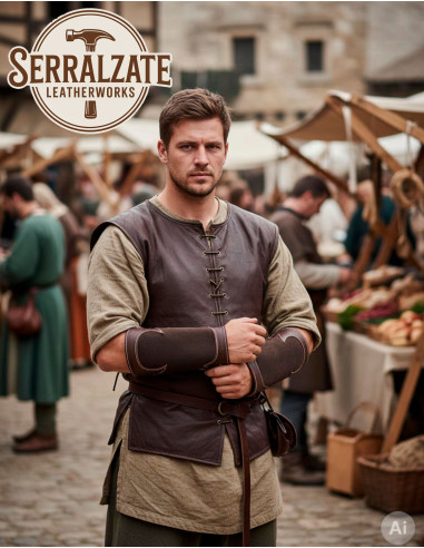 Braceletes medievais de guardas florestais em couro, marrons escuros