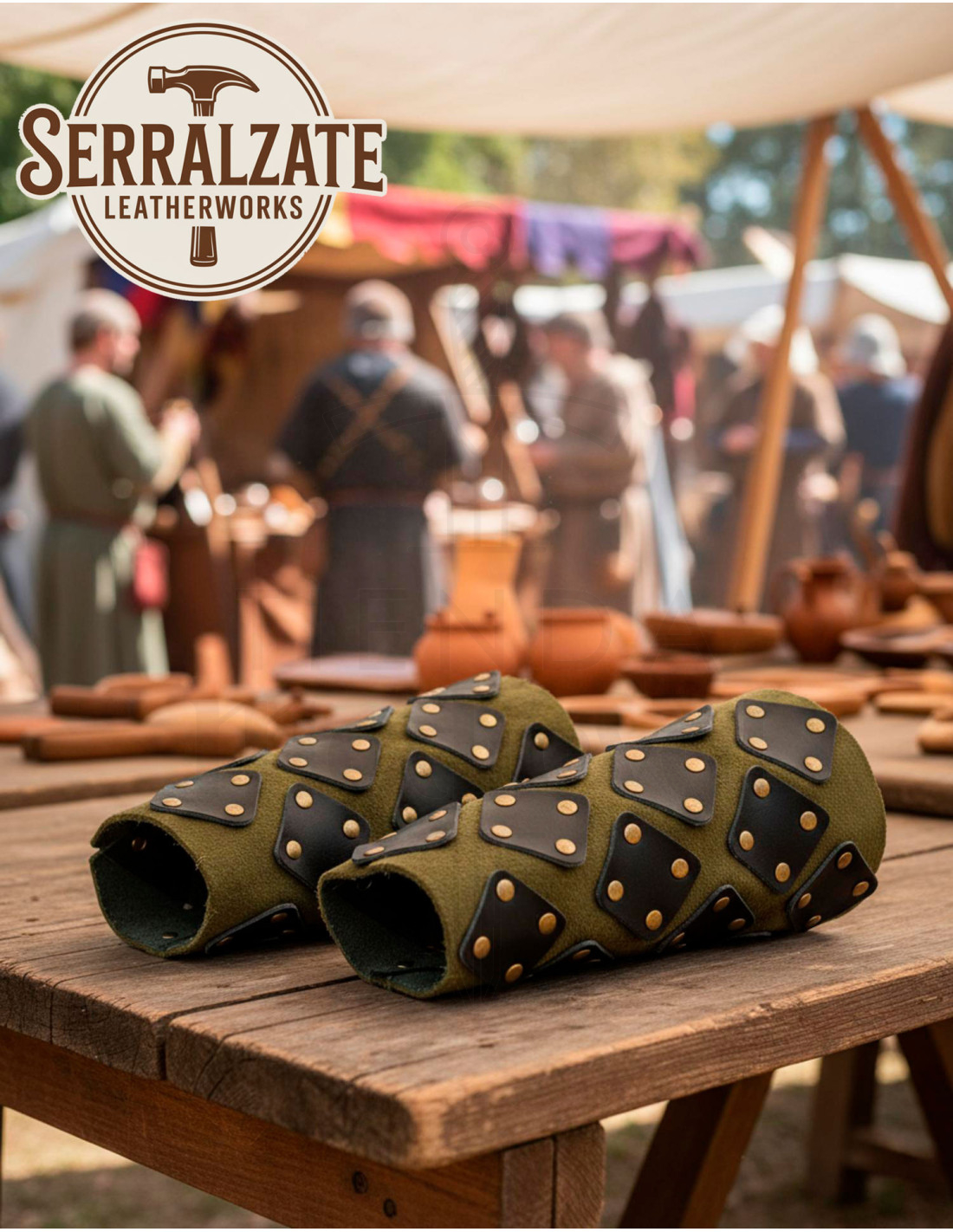 Projetadas pensando em arqueiros, exploradores e combatentes que valorizam a mobilidade, oferecem um ajuste adaptável graças aos cordões, permitindo que fiquem firmes sem apertar. O interior suaviza o contato com a pele, evitando desconfortos durante longas jornadas em eventos, práticas ou jogos de role-playing, enquanto o exterior envelhecido traz um visual rústico e artesanal que se adapta tanto a recriações históricas quanto a ambientações fantásticas.