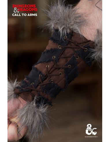 En la imagen se aprecia claramente la superposición de paneles y la textura granulada del cuero, detalles que no solo aportan personalidad, también protegen y resisten el uso continuado. El diseño cubre la parte central del antebrazo, combinando protección funcional con una silueta que se integra fácilmente en vestuarios históricos, atuendos de fantasía o looks urbanos con aire rústico.