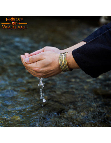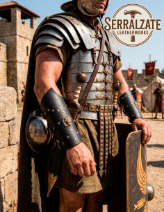 Este conjunto não só se destaca pela sua presença impressionante, mas também oferece um ajuste firme e seguro, graças a fivelas que mantêm a peça no lugar durante todo o dia. A resistência do couro e os acabamentos em bronze asseguram que possas jogar, mostrar-te poderoso e sentires-te confortável sem te preocupar com desgastes prematuros. Com estas braçadeiras, tu controlas o espaço, a atenção, e transmites uma autoridade que outros só desejam imitar. A elegância e o caráter de um comandante romano, agora em tuas mãos, transformam-te num símbolo de liderança e contundência em qualquer cenário.