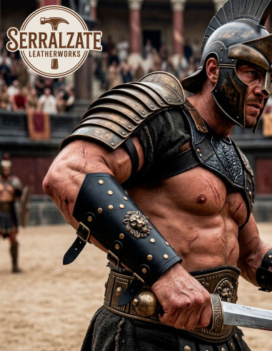 Braçadeiras de Legionario Invictus, Couro preto com Emblema de Leão