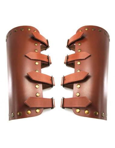 Braçadeiras Vikingas de Couro Marrom com Escamas