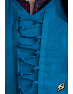 Vestido medieval e renascentista mulher Adelina em azul Misty