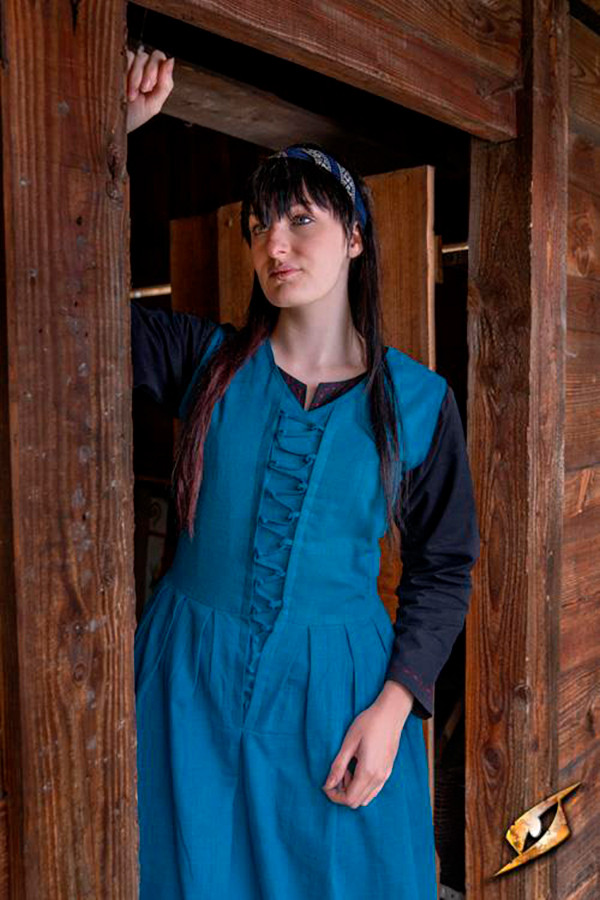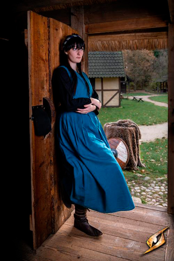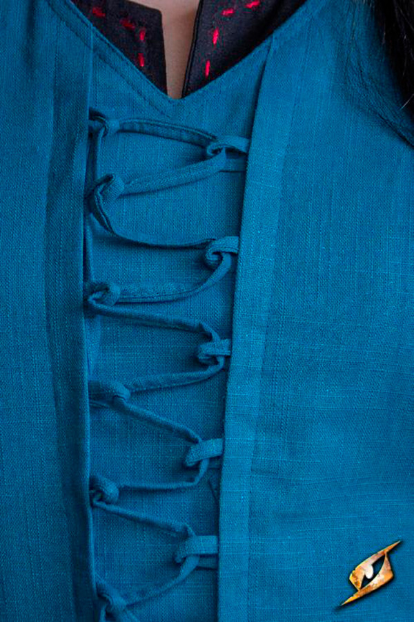 Pesando 532-570 gramas, este vestido é leve e confortável de usar, permitindo que você se mova com facilidade durante seus eventos medievais ou renascentistas. Sua cor azul Misty adiciona um toque de mistério e sofisticação ao seu look, destacando-se da multidão.