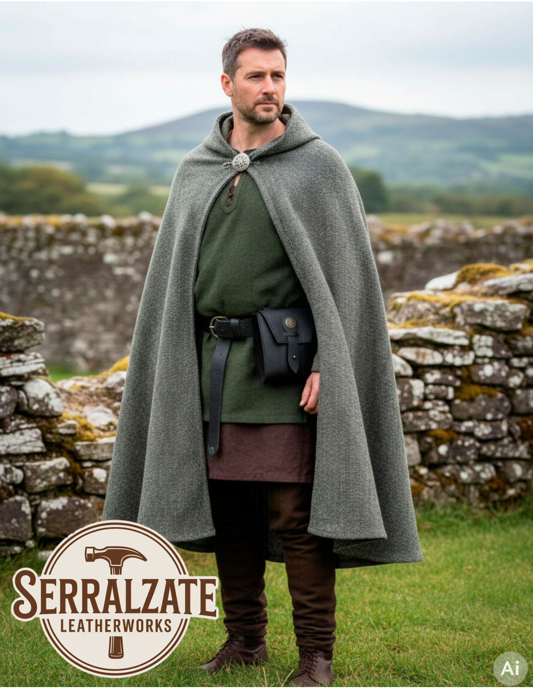 Esta bolsa de cintura de inspiração celta transforma o prático em uma peça que conta histórias. O fecho com adornos metálicos de nós em espiral e a tira de couro que desliza sobre uma base de latão não apenas conferem caráter, mas garantem um fechamento seguro e um acesso rápido quando necessário. O conjunto transmite solidez e detalhe, perfeito para quem valoriza tanto a estética quanto a funcionalidade.