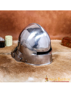 O sallet era bastante popular entre os exércitos no final da Idade Média devido à sua versatilidade e bom equilíbrio entre proteção e mobilidade. Basta emparelhá-lo com um de nossos gorgets (vendidos separadamente) e você terá uma ótima combinação para o seu próximo LARP ou reconstituição!