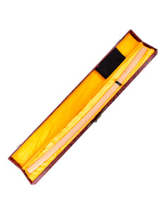 Shirasaya Funcional, com folha de aço carbono AISI 1045 com aresta. Bainha e cabo de madeira clara. Inclui caixa de madeira forrada de tecido decorativo de apresentação.
