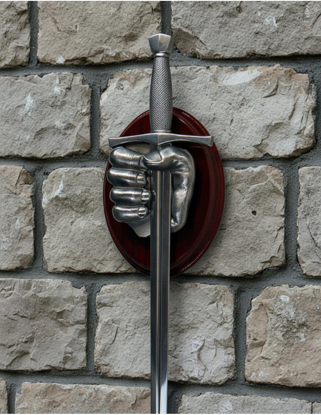 Você é um amante de espadas procurando uma maneira elegante e segura de exibi-las? Nós temos a solução perfeita para você! Apresentando nosso suporte de mão para pendurar espadas verticalmente.