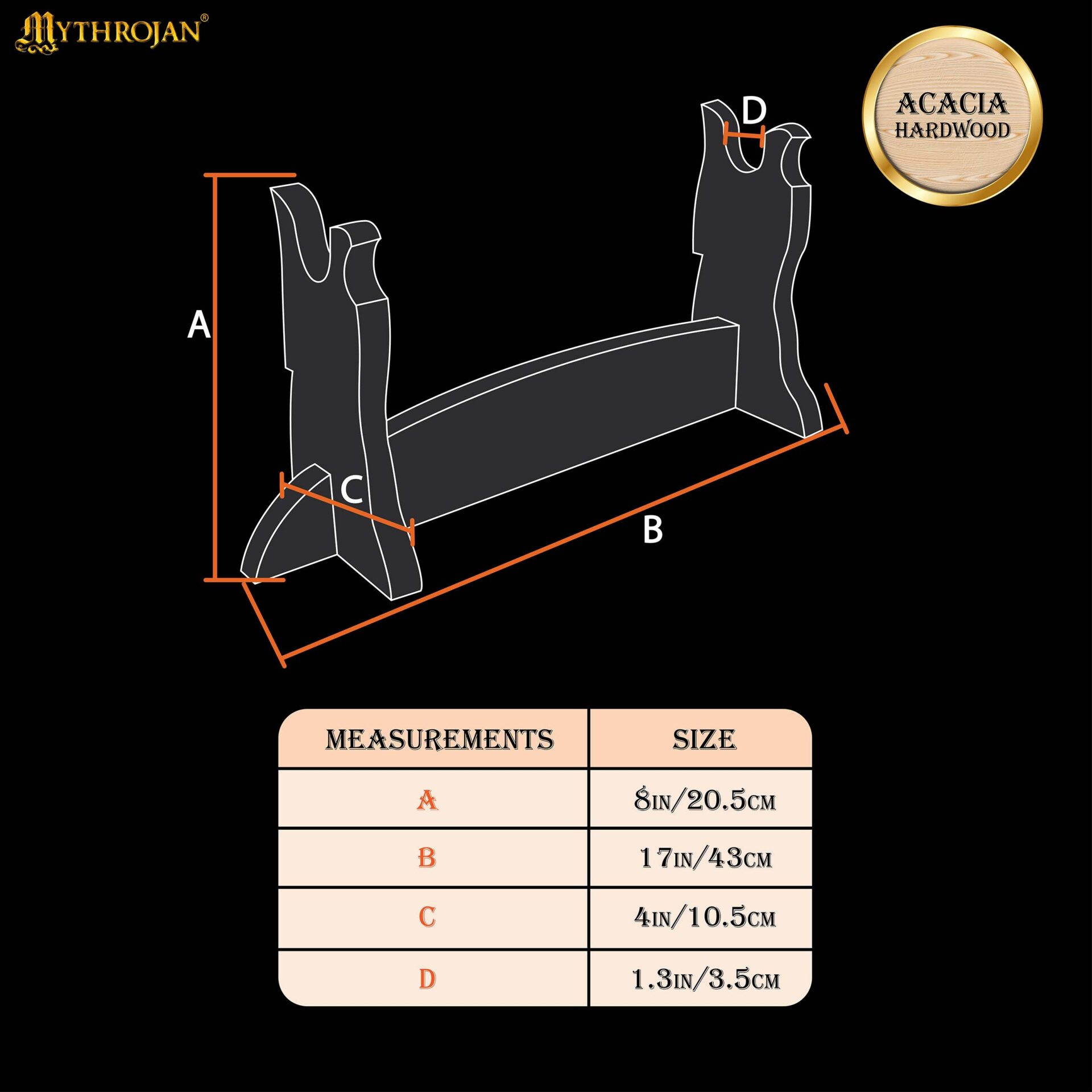 Suporte de madeira para machado ou espada (33,4 x 13,5 cm.)