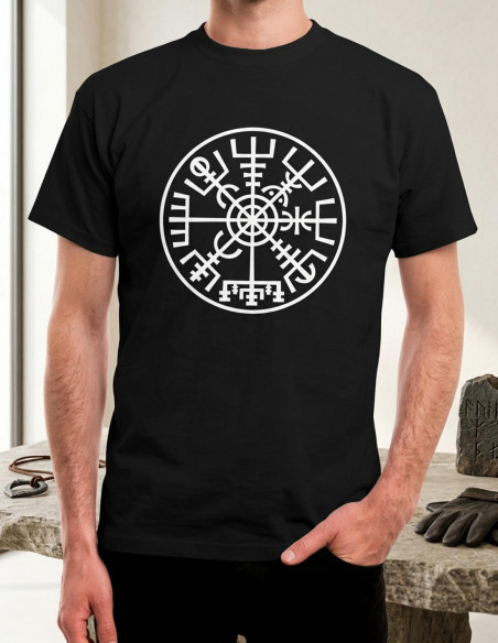 T-shirt Vikings Vegvísir preta, manga curta