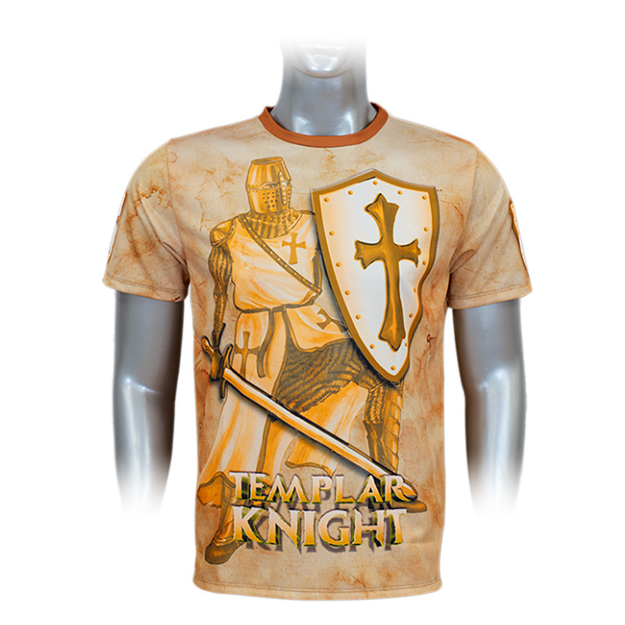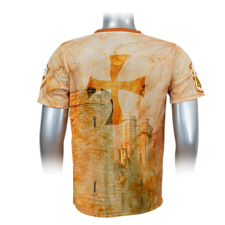 Descubra a incrível T-shirt de sublimação dourada dos Cavaleiros Templários. Com um desenho estampado na frente, nas costas e nas laterais, esta t-shirt permite-lhe mostrar a sua paixão pela histórica ordem dos Templários de uma forma elegante e apelativa.