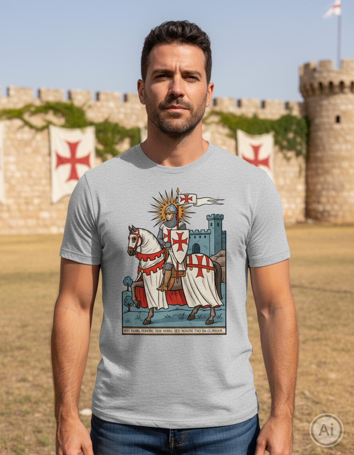 Quer uma camiseta que conte uma história sem esforço? Esta peça traz a estética templária para o seu armário, pronta para se destacar em qualquer ocasião casual.