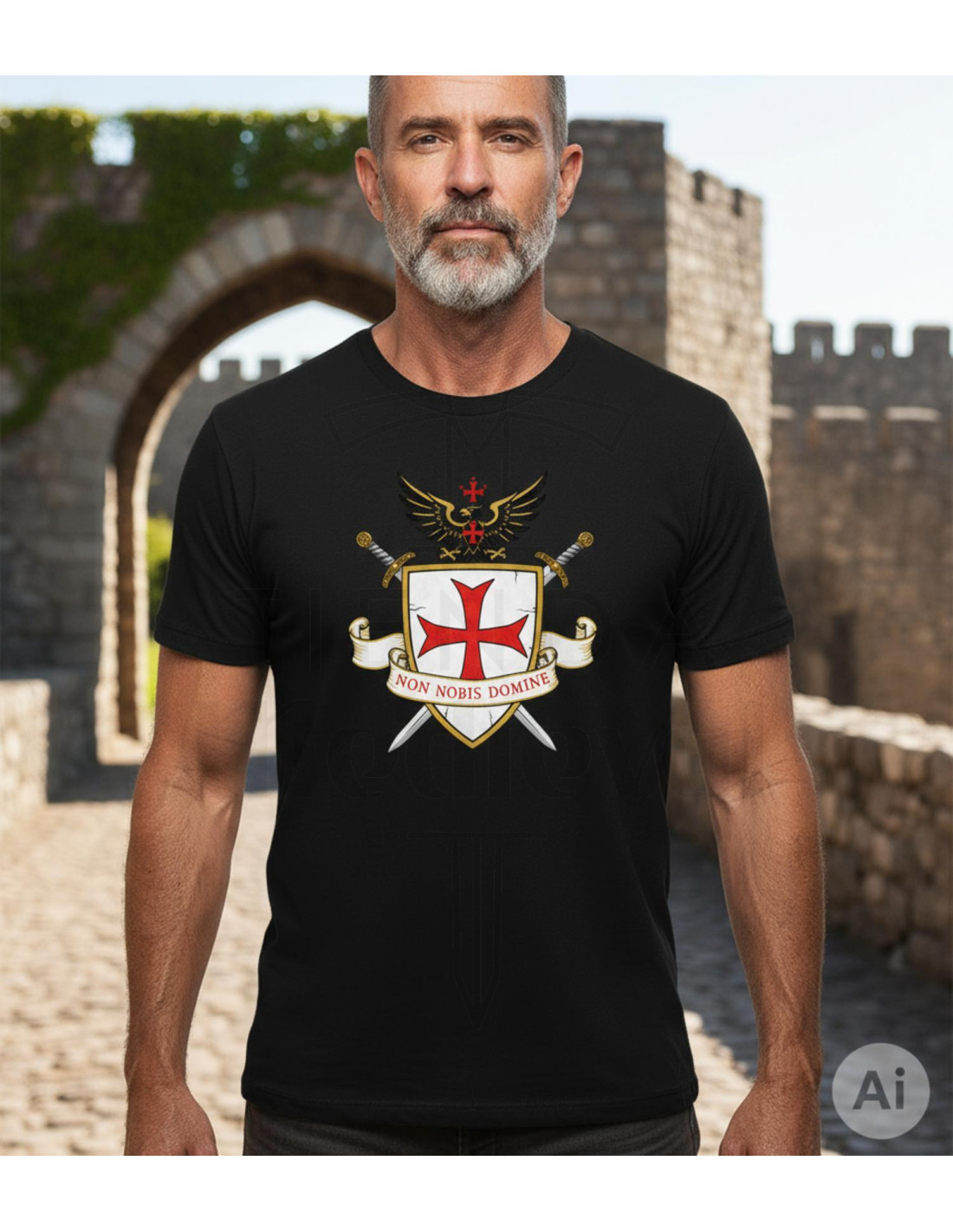 Projetada para quem busca conforto e personalidade, esta camiseta de algodão de malha lisa oferece um toque suave e uma queda agradável que facilita usá-la o dia todo, tanto na rotina quanto em saídas informais. A impressão digital direta integra o design Non Nobis Domine na peça sem deixar relevo, mantendo-a uniforme ao uso e resistente às lavagens.