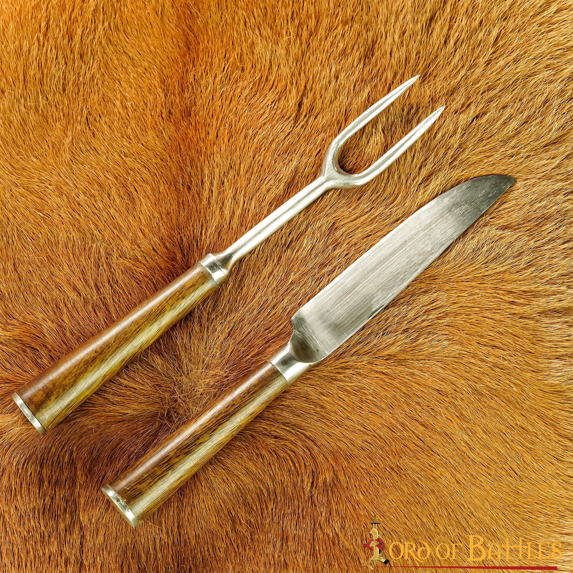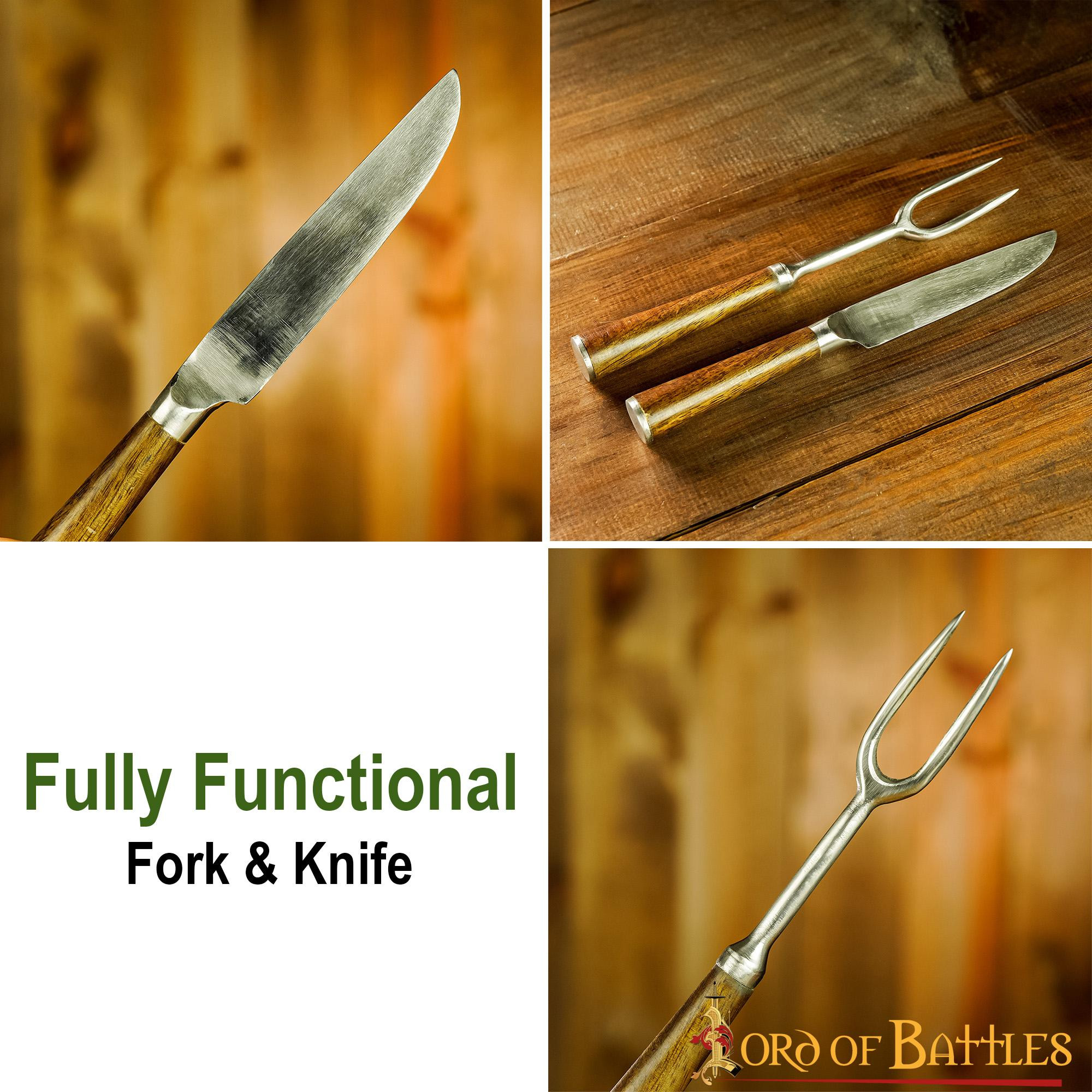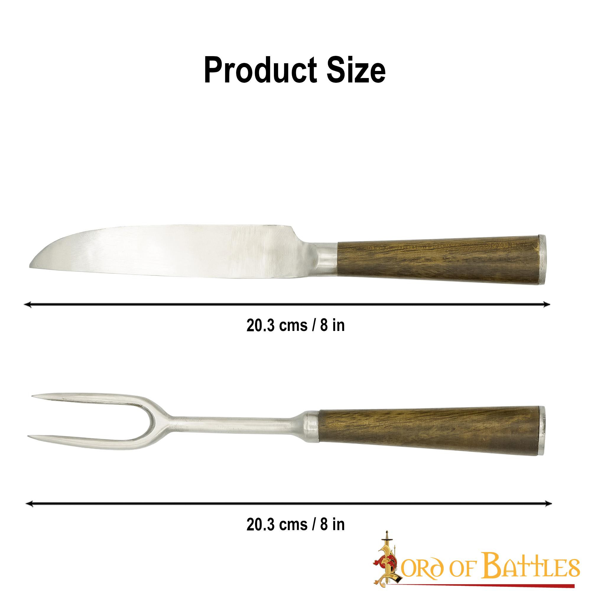 Conjunto de garfo e faca medieval (20,3 cm.)