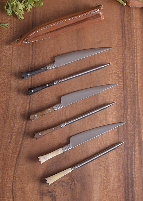 Conjunto 2 talheres medievais com ameias e capa de couro - chifre chifre