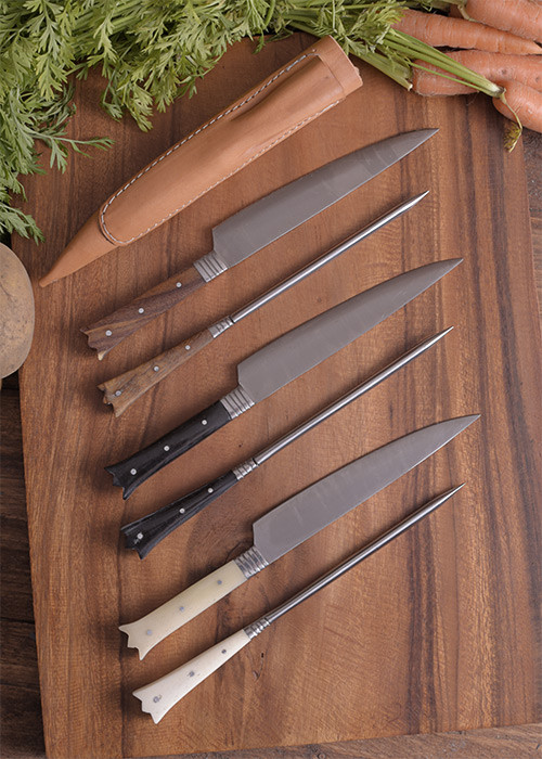 Conjunto de 2 talheres medievais de chifre de búfalo