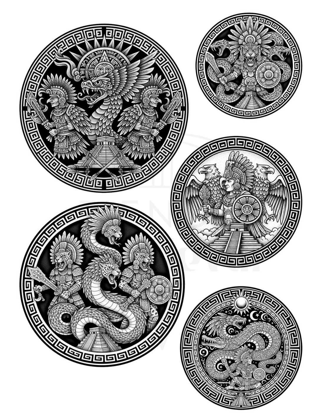 Quer exibir um estilo cheio de história e cultura sem comprometer sua pele? Esta tatuagem temporária com temática Mesoamericana, inspirada nas civilizações Asteca e Maia, é a opção perfeita para destacar sua paixão por essas antigas culturas. Imagine usar na sua pele desenhos vibrantes e cheios de simbolismo, em um tamanho confortável de folha A4 que facilita sua aplicação em diferentes áreas do corpo. Cada adesivo é enviado em papel especial, em modo espelho, para que ao colocá-lo na sua pele o design fique na orientação correta, criando um efeito impressionante e autêntico.