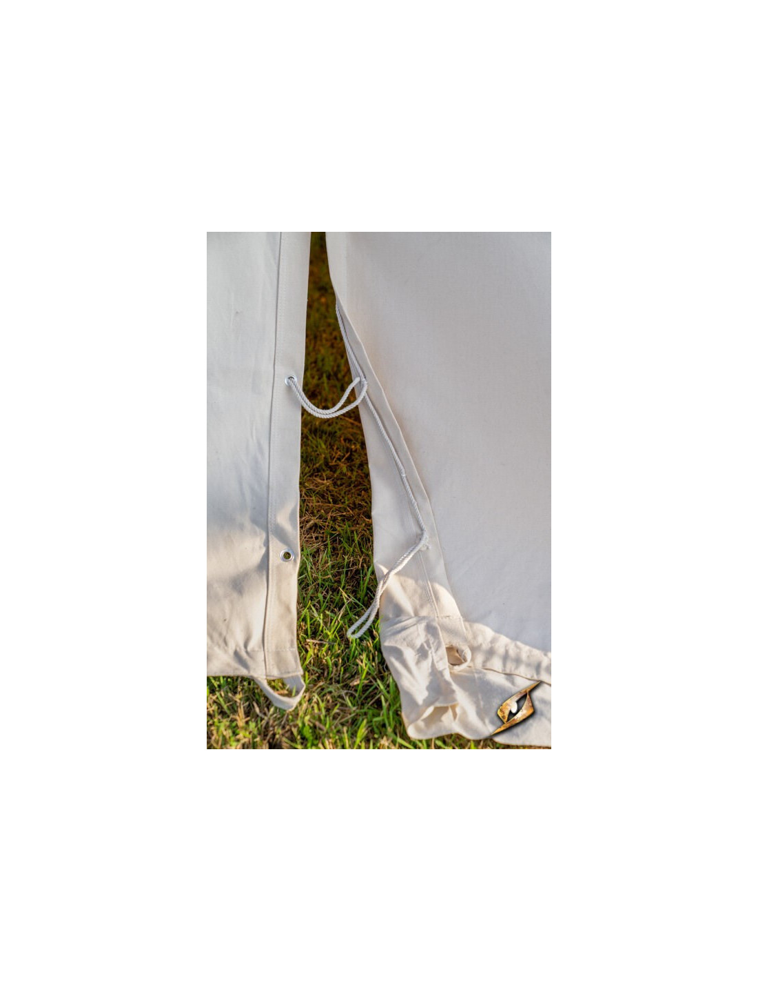 Uma das vantagens desta tenda é a sua fácil instalação. Dois postes centrais sustentam a estrutura, enquanto vinte pinos mantêm a barraca firmemente presa ao solo. Isso permitirá que você o monte de forma rápida e fácil, economizando tempo e esforço.