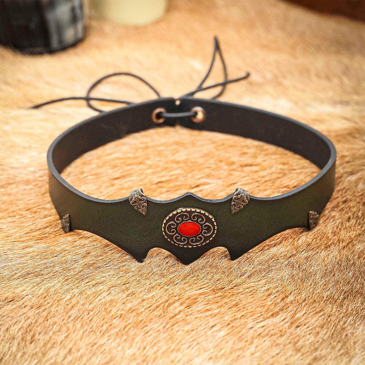 Tiara de couro com gema de fantasia medieval