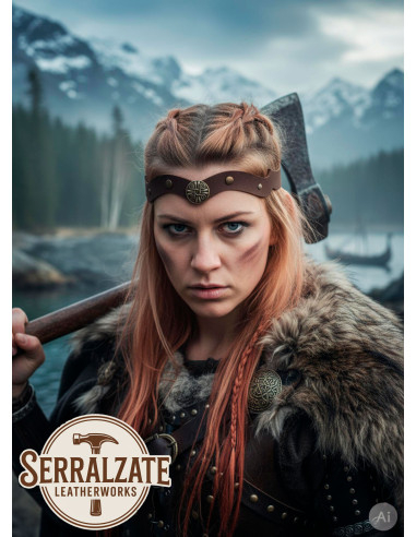 A delicada tonalidade marrom, junto aos detalhes de inspiração viking e celta, fazem dela um complemento único, que pode complementar tanto looks históricos quanto estilos modernos com um toque rebelde e autêntico.