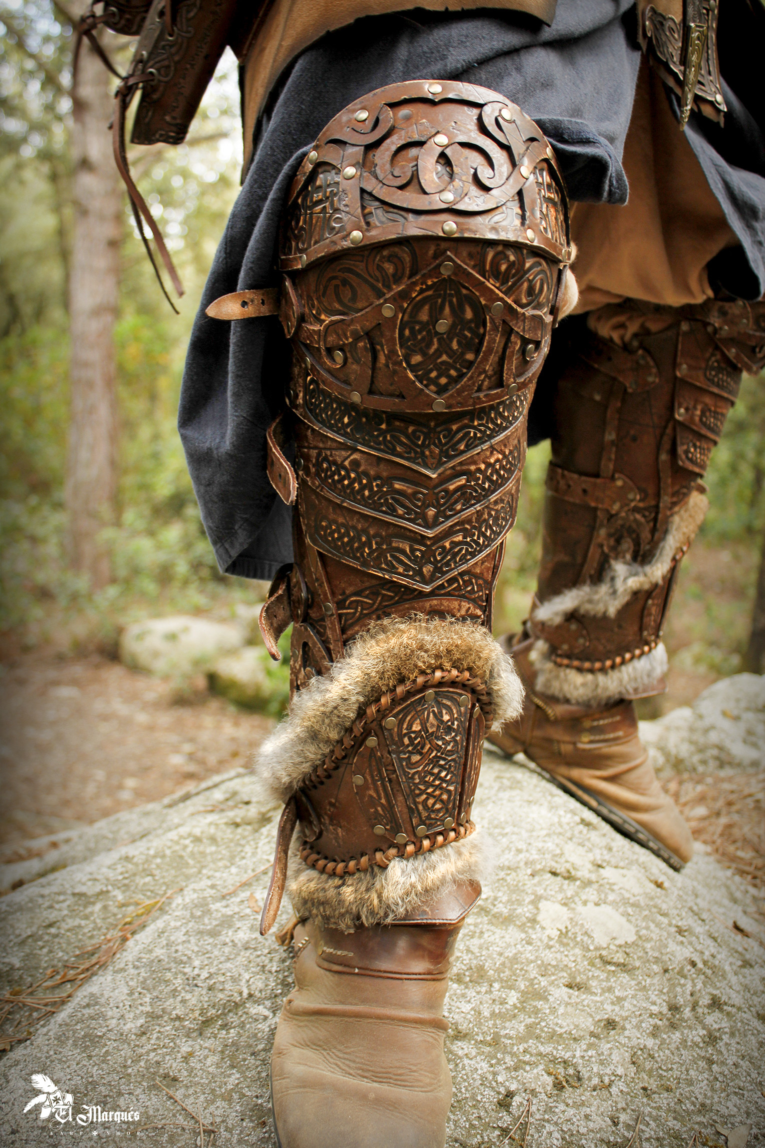 Caneleiras vikings em couro modelo Sigurd, cor marrom