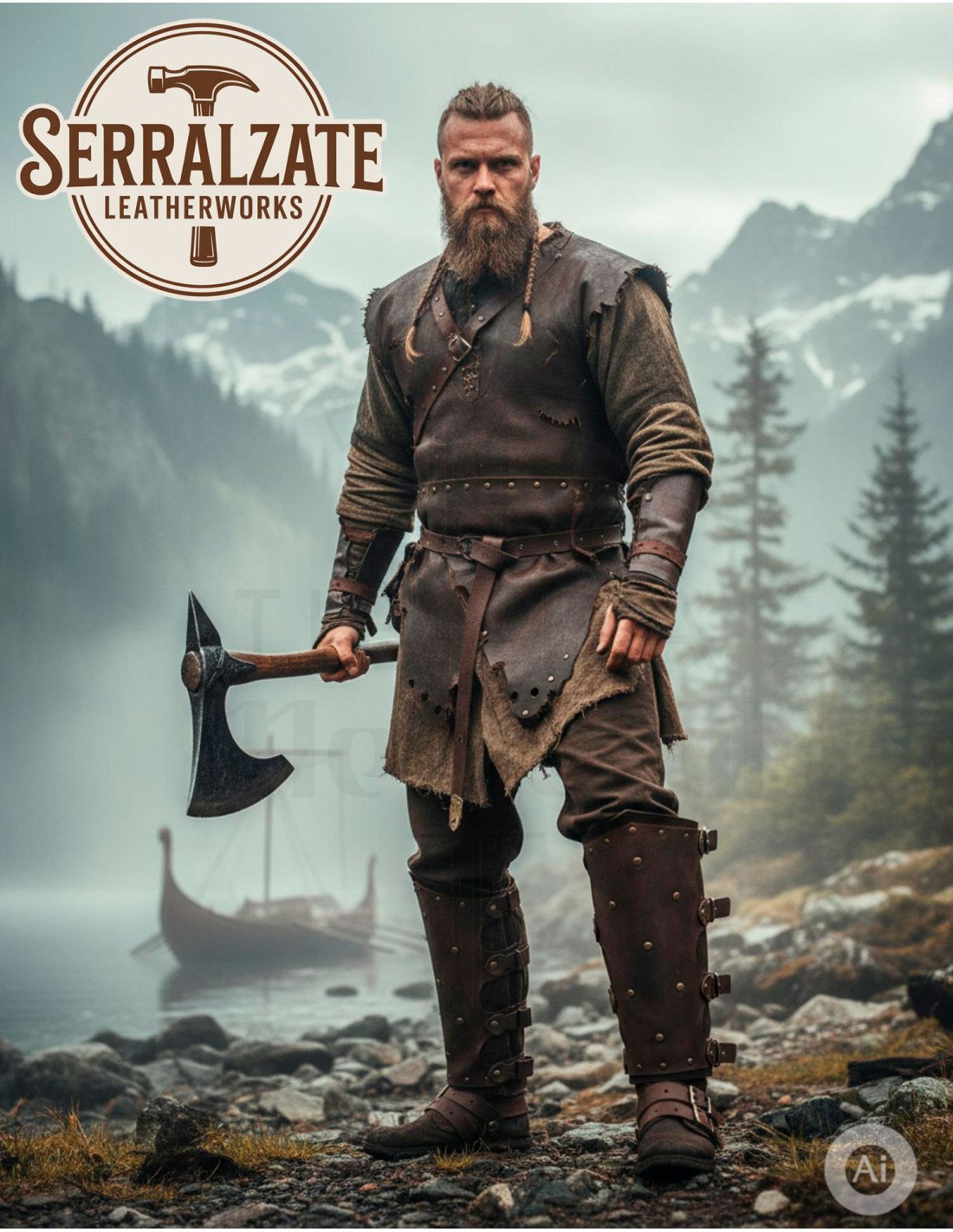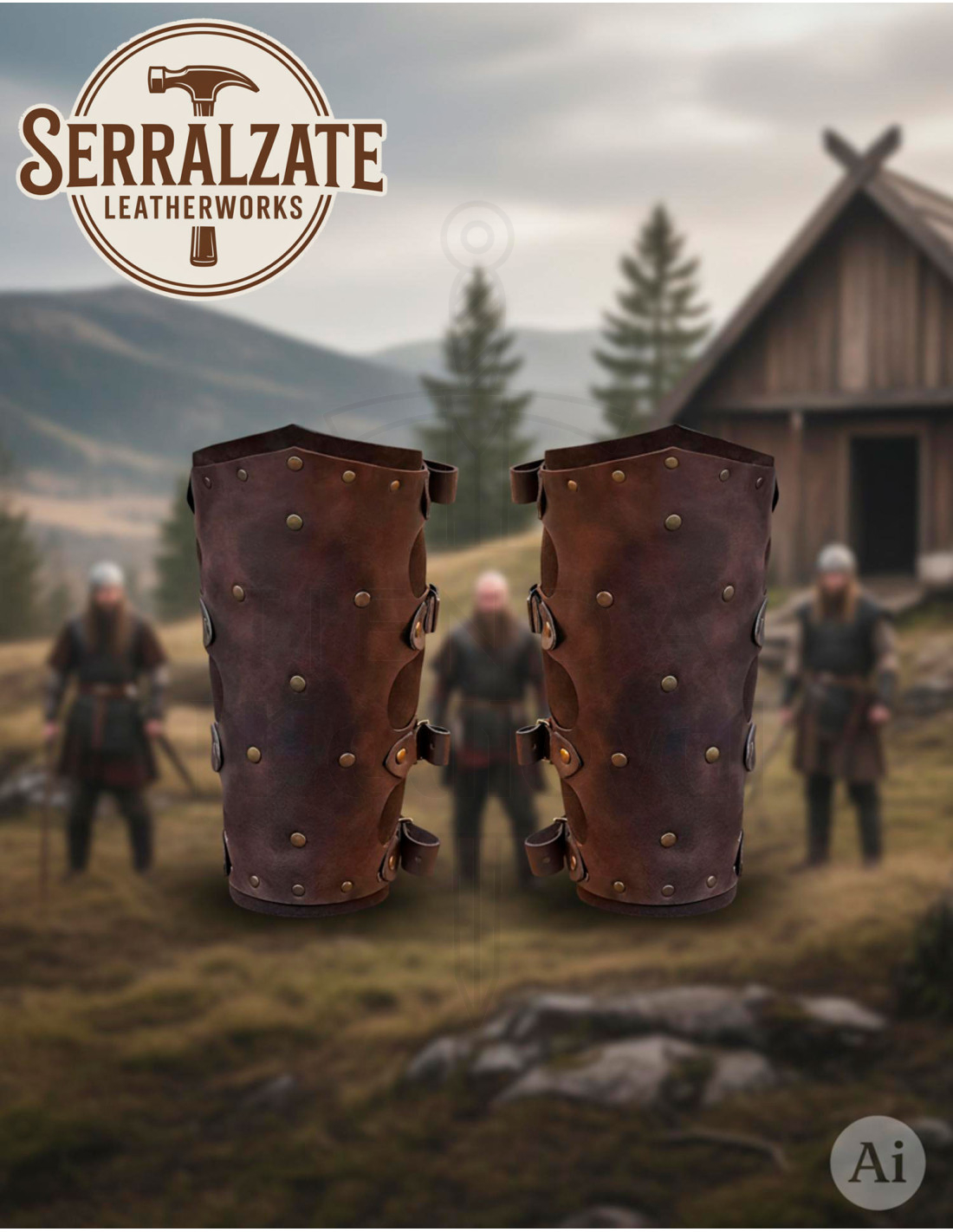 Se deseja comprar as grevas vikings-medievais Badulf em marrom, aqui está uma opção feita à mão por renomados artesãos espanhóis, pensada para quem busca autenticidade e durabilidade em cada detalhe.