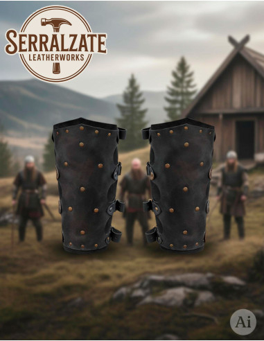 Se você deseja comprar as Grevas vikings-medievais Badulf em preto, aqui está uma opção feita à mão por renomados artesãos espanhóis, pensada para quem busca autenticidade e durabilidade em cada detalhe.