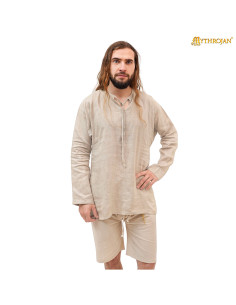 Imagine vestir-se com uma peça que o transporta diretamente para a época medieval, onde a elegância e o conforto coexistiam lado a lado. Esta túnica medieval curta é muito mais do que uma simples camisa, é uma homenagem à história e à tradição que o fará se destacar em qualquer evento.