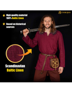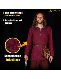 Túnica vikinga de linho, cor vermelho vinho