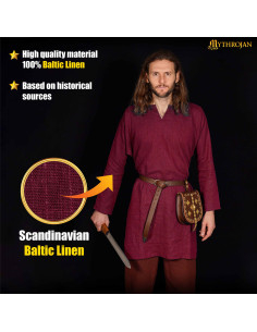 Túnica vikinga de linho modelo Erik, cor de vinho