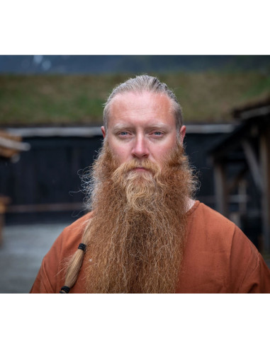 Imagine um modelo com barba e cabelo comprido, usando esta túnica de corte relaxado e decote em “V”, que combina estilo informal com um toque autêntico. Se você sonha em reviver épocas vikings ou simplesmente deseja uma peça versátil e cheia de história, nossa túnica Erik é a escolha perfeita.