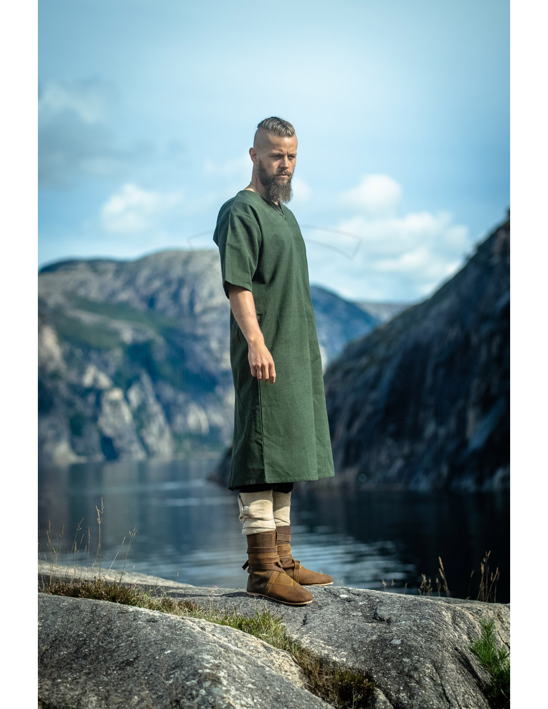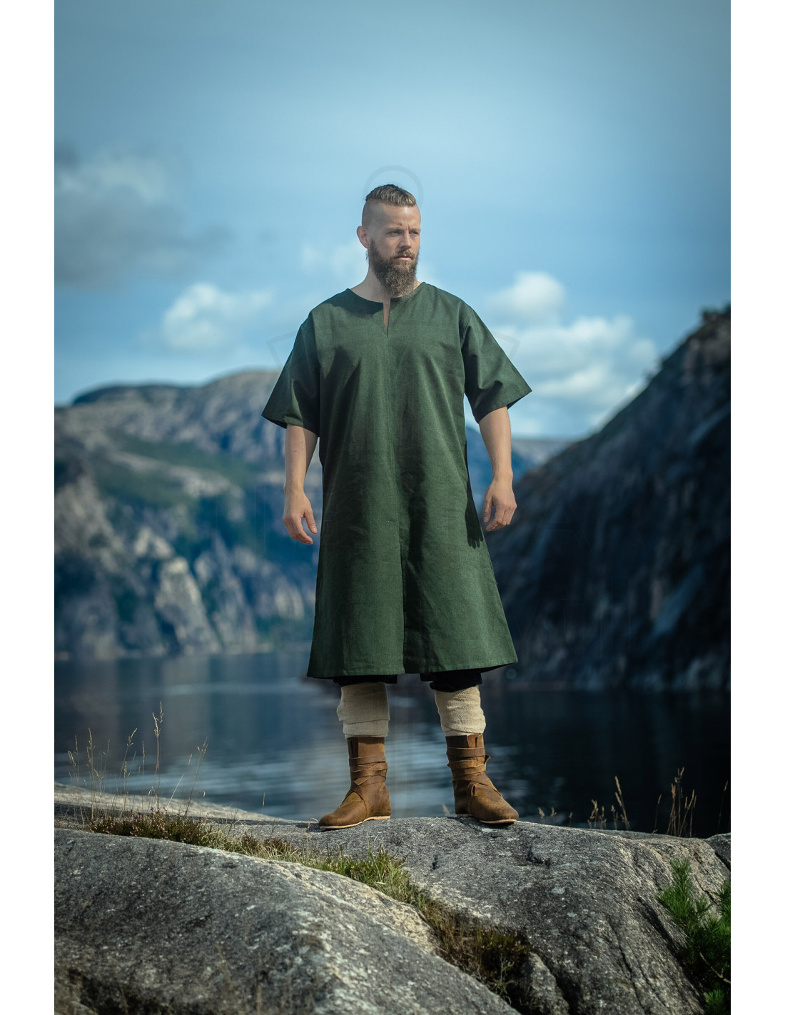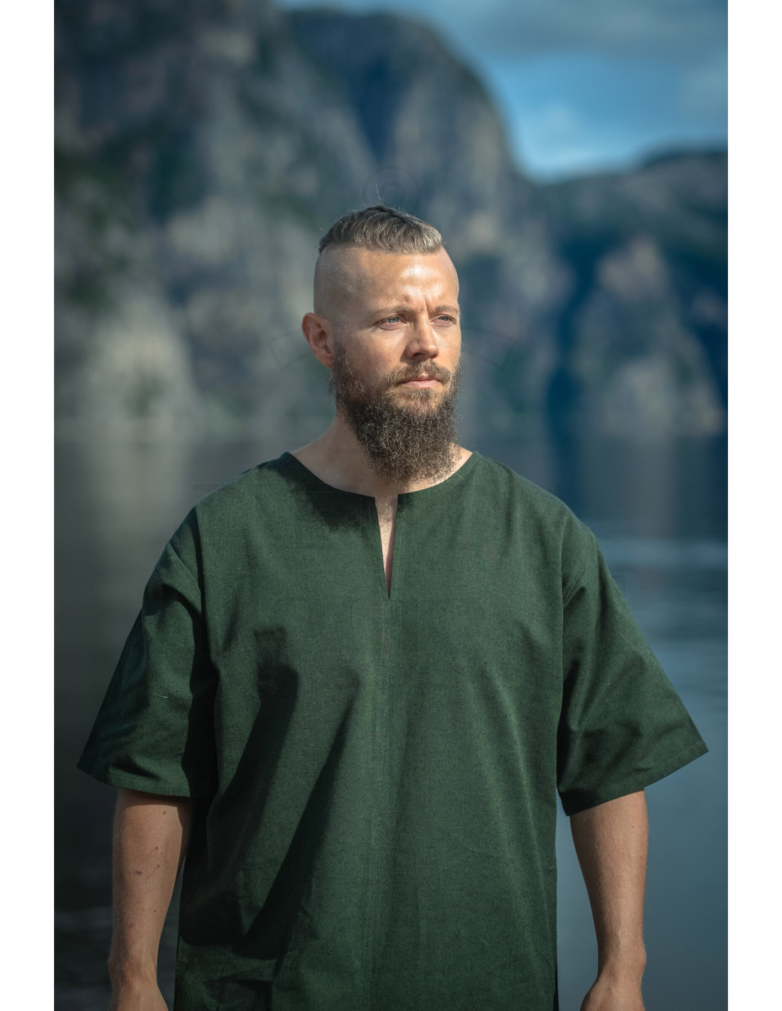 A Túnica Vikinga Masculina Asgrim com Decote em V, Verde oferece essa mistura perfeita entre caráter histórico e conforto moderno, pensada para que você se mova com liberdade e estilo. Seu decote em V facilita vesti-la e despedi-la rapidamente, enquanto o corte relaxado permite que você atue com agilidade em qualquer atividade, desde cenas de recriação até passeios diários.