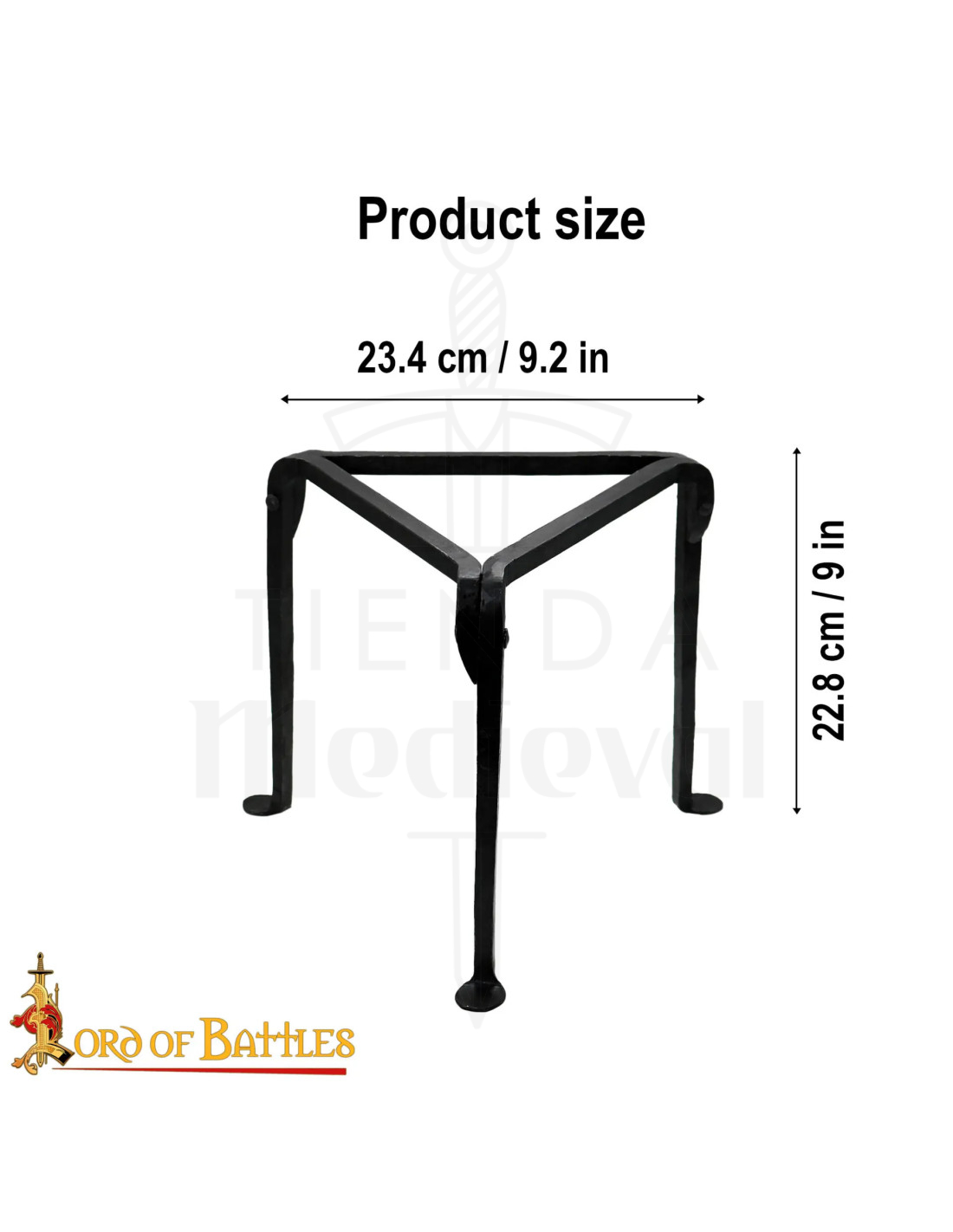 Com dimensões aproximadas de 23,4 cm de largura e 22,8 cm de comprimento, este tripé é perfeitamente versátil. Ideal para trabalhar tanto com pesadas panelas de ferro fundido quanto com frigideiras mais leves, permitindo desde preparar ensopados a fogo brando até assar carnes. A resistência do ferro forjado garante que esta peça o acompanhe em inúmeras viagens.