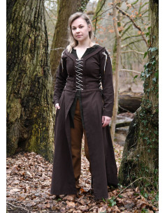 Está procurando um vestido medieval autêntico e versátil? Então o vestido Marit com cordão é perfeito para você. Este vestido conta com um corpo ajustado e uma saia em linha A, e é feito de tecido de alta qualidade em uma linda cor marrom.