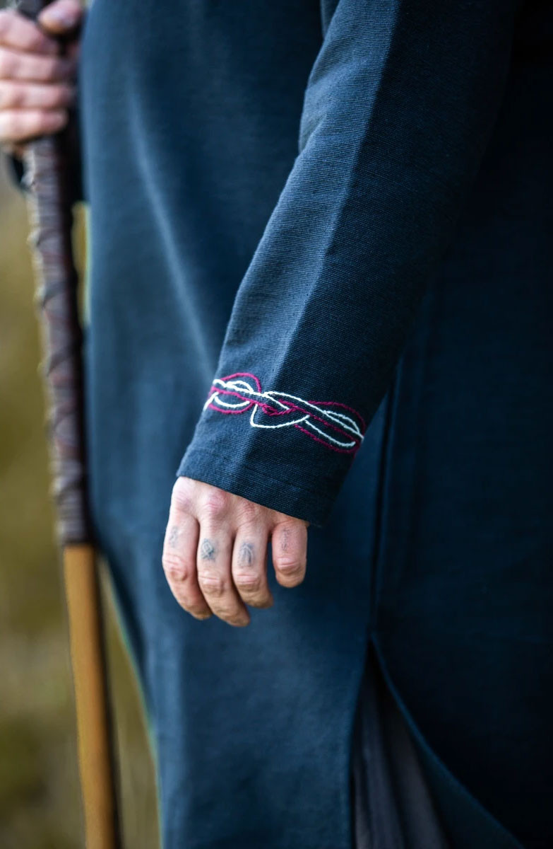 A Túnica Snorri Viking é uma peça de vestuário de alta qualidade confeccionada em 100% algodão grosso, perfeita para os amantes da cultura viking. A túnica tem um desenho rústico e é adornada com bordados à mão estilo Urnes no decote e nas mangas, dando-lhe um autêntico toque histórico. As fendas laterais conferem elegância e liberdade de movimentos. A túnica é ideal para festas temáticas, eventos históricos ou para quem quer vivenciar a atmosfera viking.