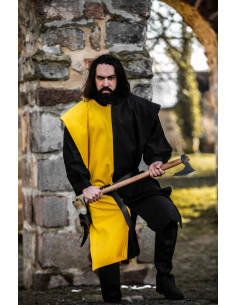 Frojoerick túnica medieval bipartida, preto-amarelo