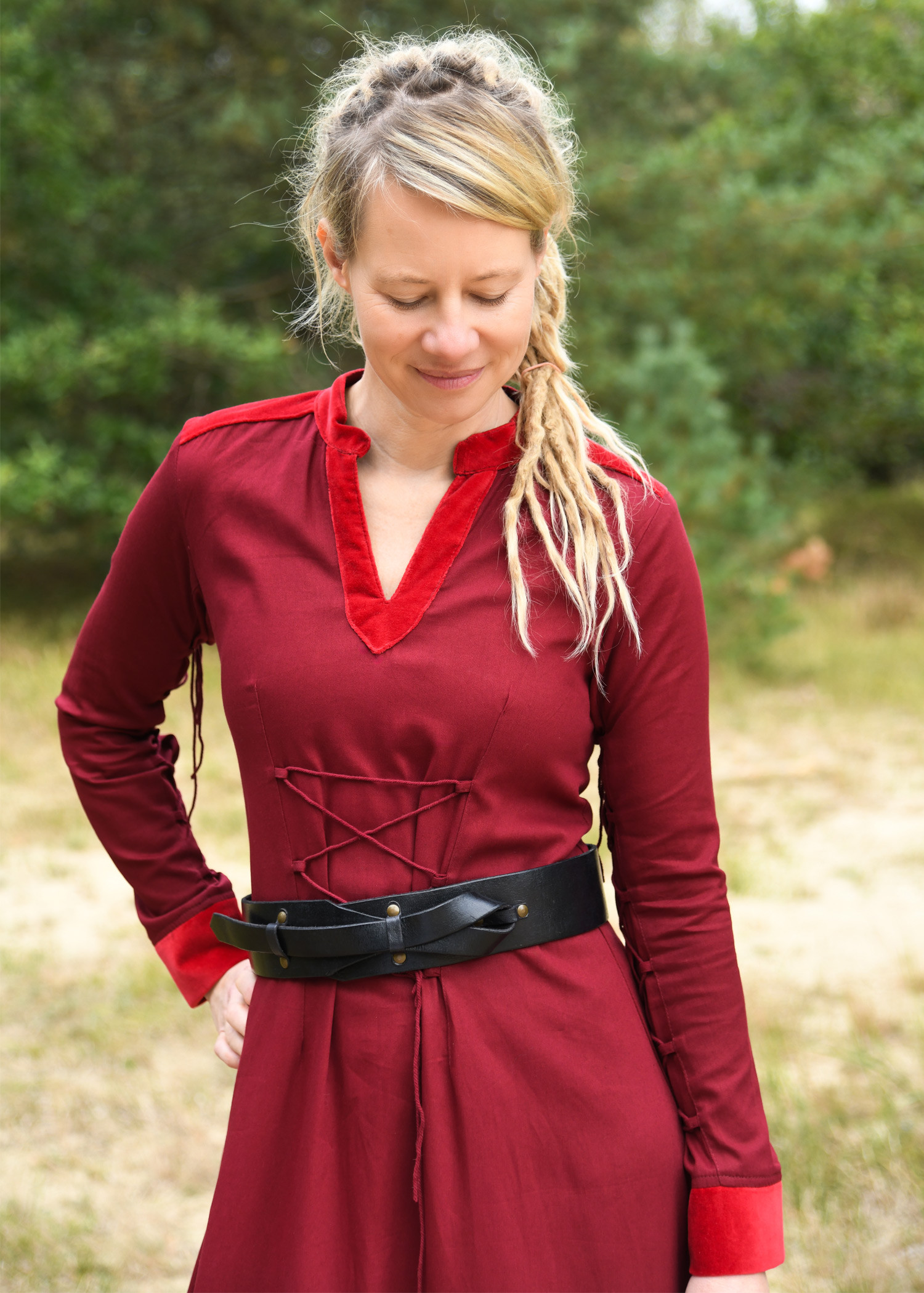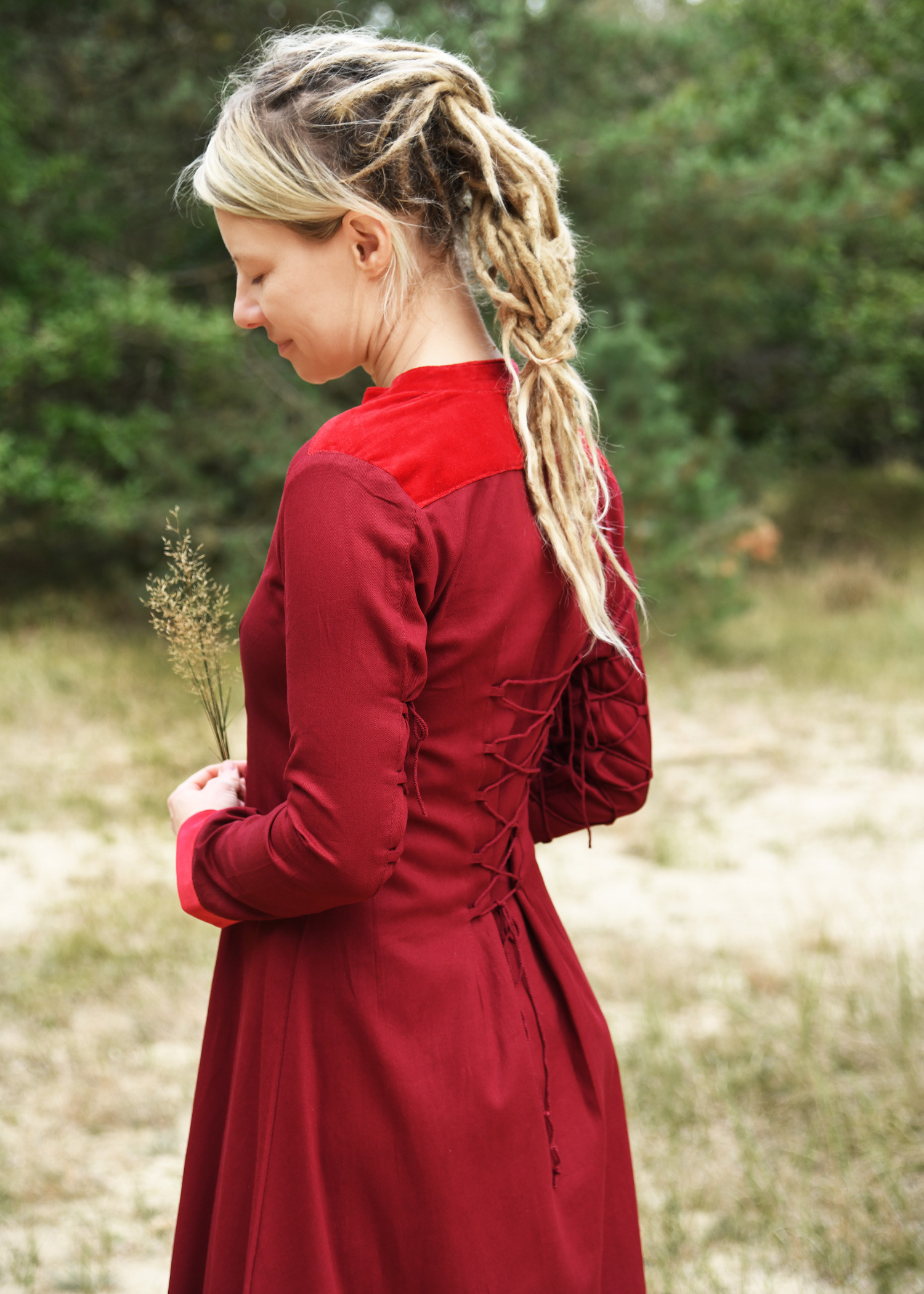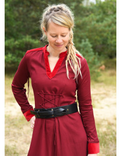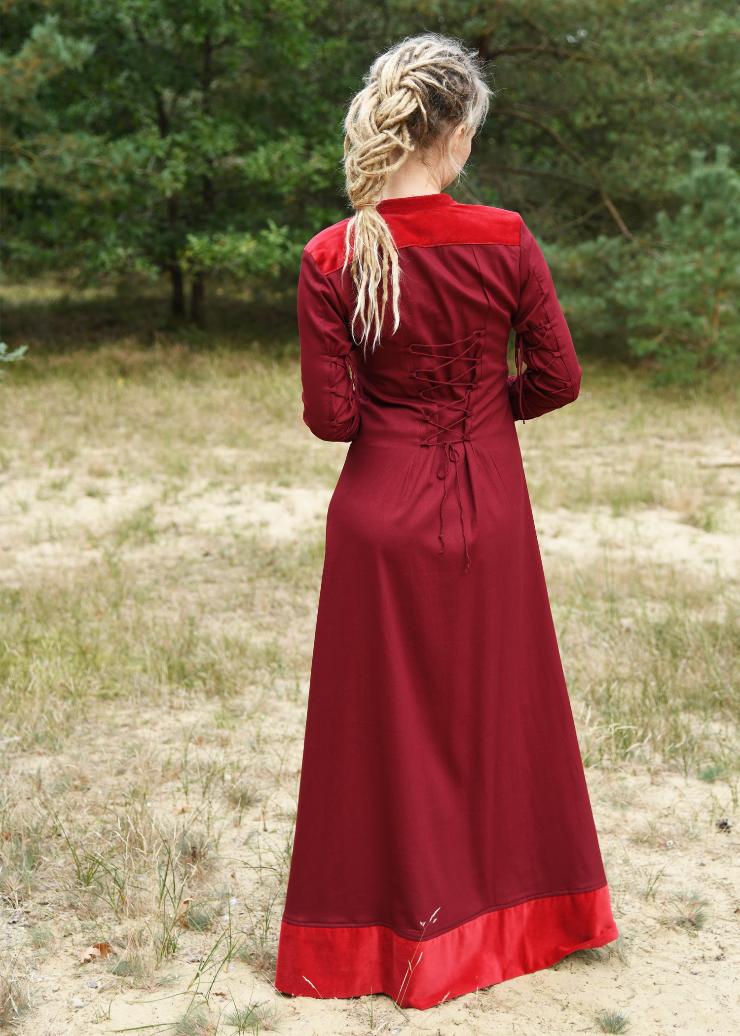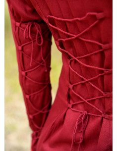 Atreva-se a se destacar em qualquer evento com o vestido medieval longo modelo Meira na cor vermelha, projetado pela Battle Merchant. Este impressionante design de inspiração histórica combina elegância e personalização para oferecer a você uma peça única e sofisticada.