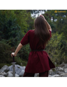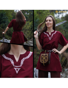A impressionante borda na gola em forma de V, em delicada cor branca, destaca a atenção meticulosa aos detalhes e acrescenta um toque distintivo à peça. Suas mangas curtas e largas não apenas conferem um ar autêntico, mas também facilitam a mobilidade, perfeita para participar de justas, danças ou simplesmente aproveitar uma reunião medieval com amigos. O tecido quente e durável desliza com elegância, garantindo que você fique ótimo e confortável em qualquer ocasião.