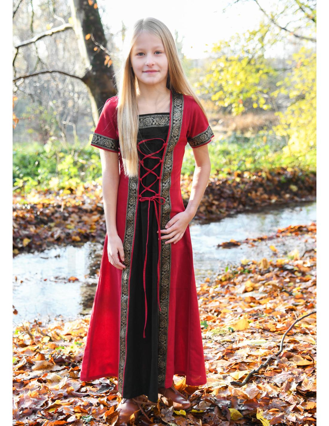 Descubra a magia da época medieval com o Vestido Medieval para Menina 'Leonor' de manga curta em vermelho e preto da prestigiada marca Battle-Merchant! Este vestido é perfeito para a sua pequena se sentir uma verdadeira princesa da Idade Média. Abaixo, mostramos todas as características que tornam este vestido especial: