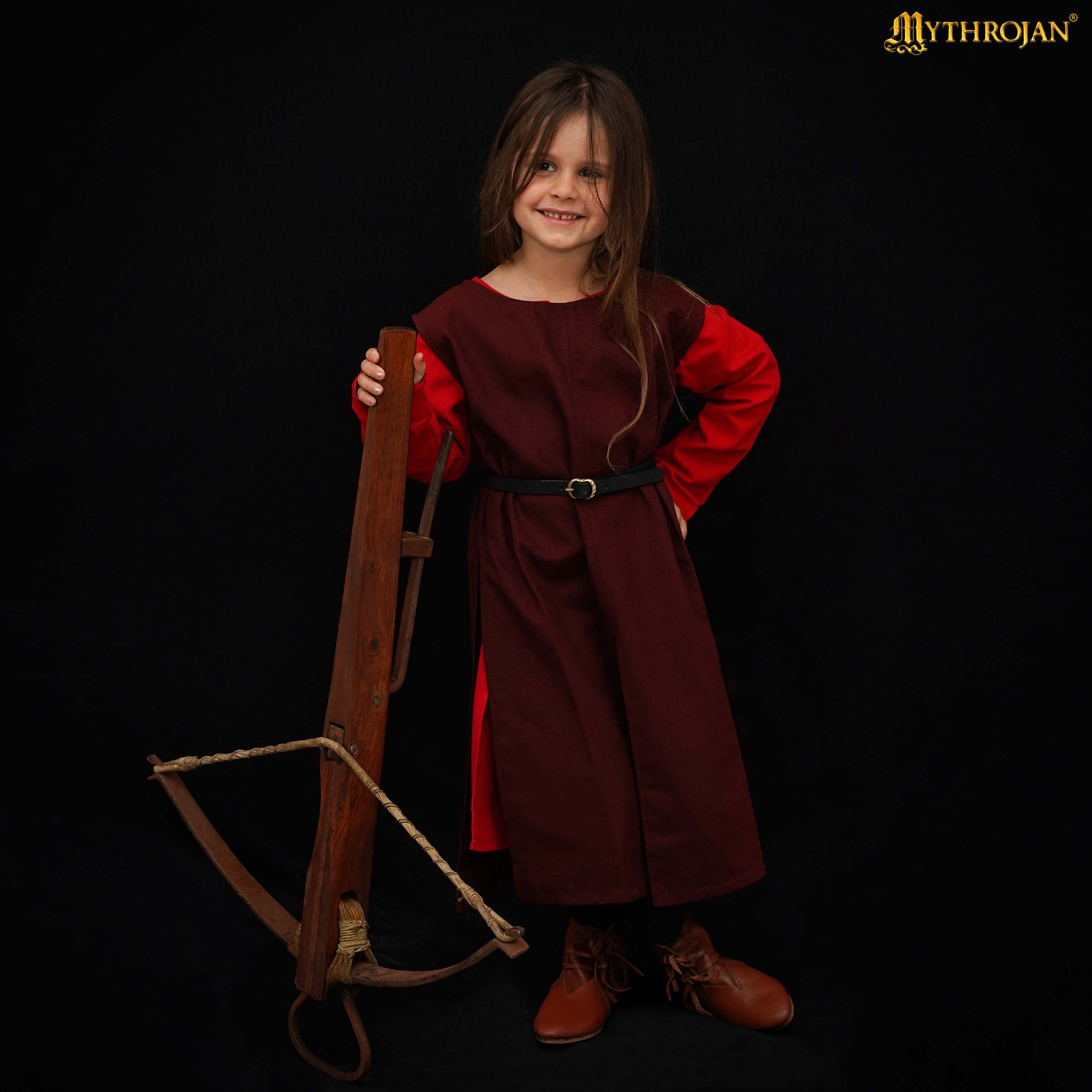 Torne-se o herói das aventuras medievais com o Tabardo Medieval para Crianças em marrom da Mythrojan! Este tabardo é feito de lona durável 100% algodão, oferecendo uma combinação perfeita de durabilidade e conforto. Seu corte fluido e comprimento prático garantem que seu pequeno guerreiro fique confortável durante as brincadeiras e qualquer batalha imaginária.