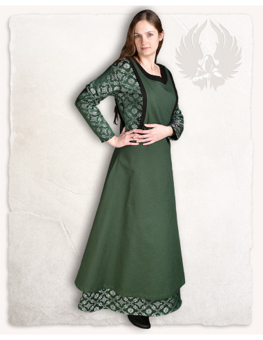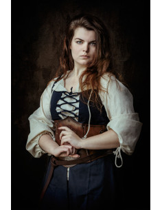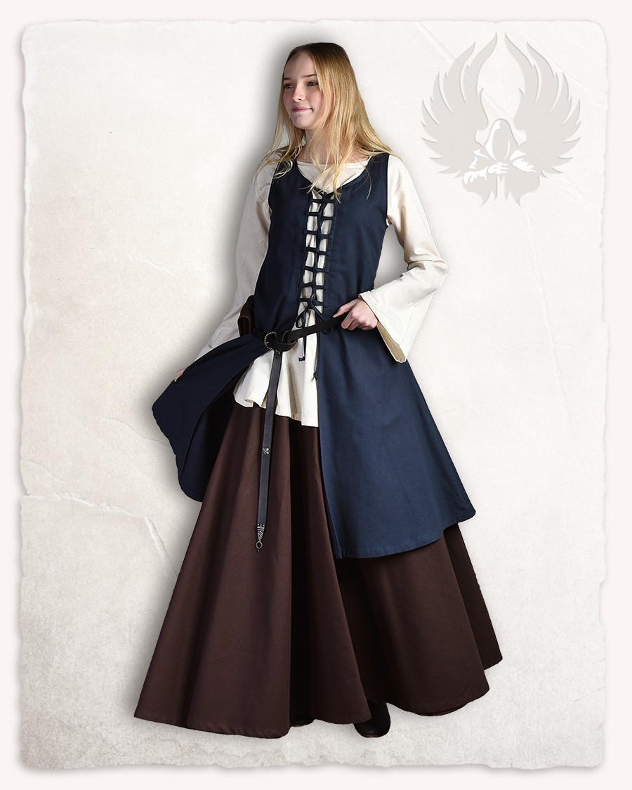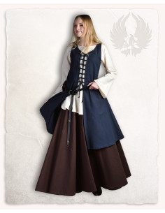 Deixe-se envolver pela elegância e charme medieval com o Vestido Medieval Azul Sem Mangas modelo -Leandra-! Feito em tecido de lona durável, este vestido cativante irá transportá-lo para épocas passadas enquanto ostenta um estilo sofisticado e atemporal. O vestido -Leandra- caracteriza-se pelo seu desenho sem mangas, ideal para realçar os ombros e realçar a sua figura com graciosidade e estilo. Geralmente é combinado com um vestido interior e é fechado com um interlock na frente, permitindo que você o ajuste ao seu tamanho perfeito. Dependendo do material da roupa interior, poderá usar este magnífico vestido durante todo o ano.
