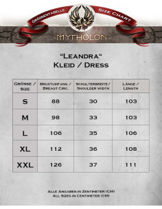 O vestido é criado pela renomada marca alemã Mytholon, conhecida por sua dedicação em recriar roupas autênticas da era medieval. Cada detalhe do Vestido Medieval Azul Sem Manga modelo -Leandra- foi cuidadosamente elaborado para lhe proporcionar uma experiência única e envolvente. Seja você uma amante da fantasia, das festividades medievais ou apenas procurando um visual elegante e distinto, este vestido certamente chamará a atenção e fará você se sentir uma verdadeira dama da época.