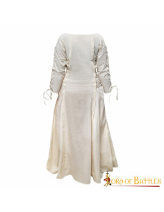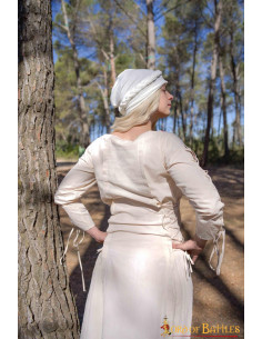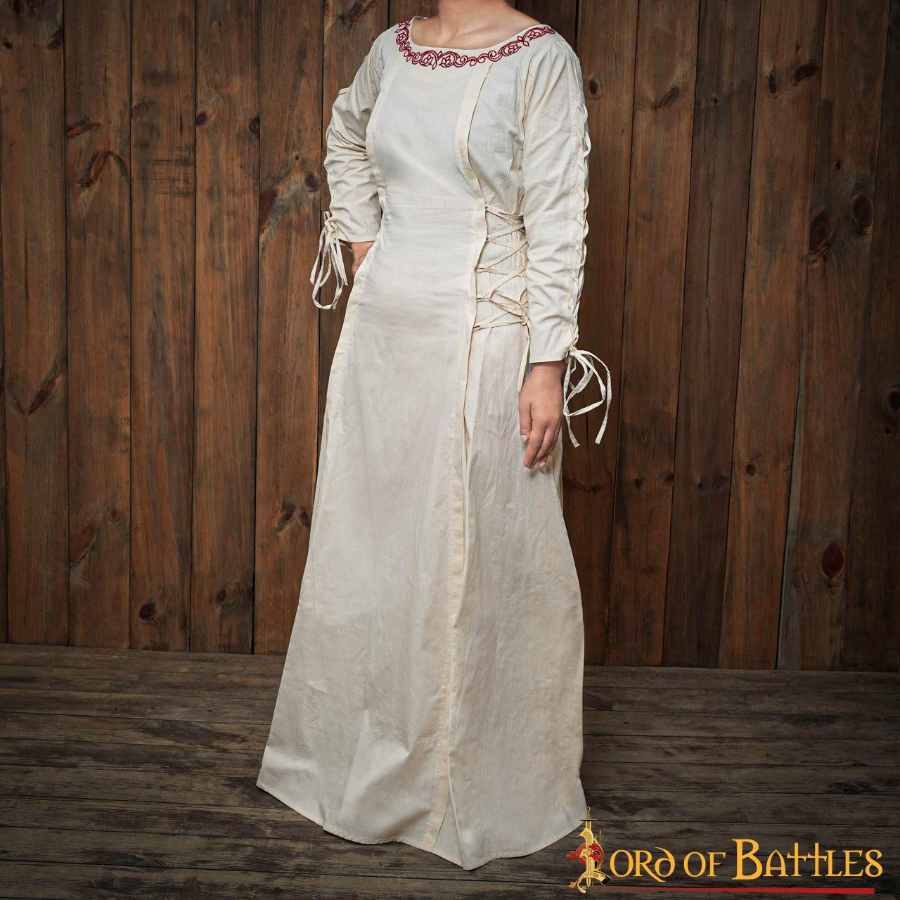 Este vestido medieval princesa aventureira em algodão irá mergulhar você na magia da Idade Média. Fabricado por Lord of Battles, é uma peça de alta qualidade que você não vai querer perder. Torne este pedaço de história seu e comece sua própria aventura medieval hoje mesmo!