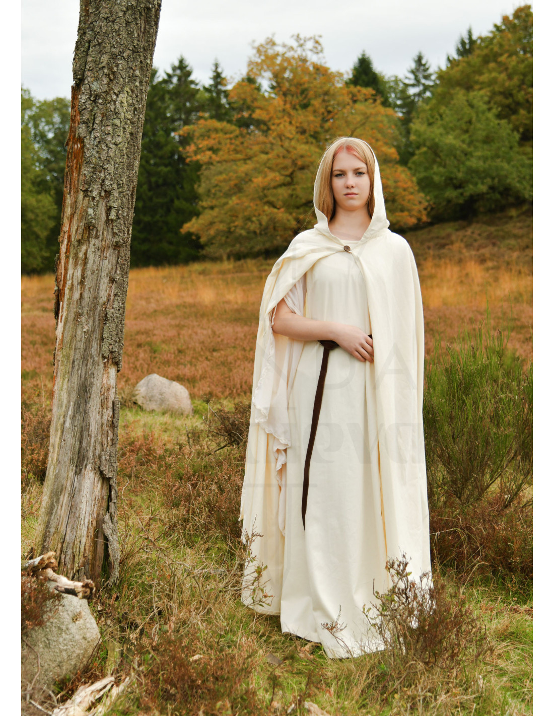 O Vestido medieval Ingrid com cordões nas costas, cor natural se destaca pelo decote traseiro ajustável por meio de uma elegante cordoeira, que permite moldar a silhueta de acordo com seu conforto, criando uma cintura definida sem perder a liberdade de movimento. As pences no busto garantem um ajuste perfeito, enquanto o tecido de algodão proporciona uma sensação leve e respirável para ser usado o dia todo.