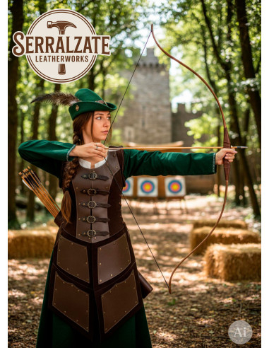 Assinado pela House of Warfare e com a garantia da Serralzate LeatherWorks, cada costura e acabamento transmite durabilidade e atenção aos detalhes, para que você leve a cada aventura sem se preocupar com a resistência. É a alternativa perfeita se você está em busca de um traje de arqueira medieval premium em couro marrom escuro com acabamentos de alta qualidade e design autêntico.
