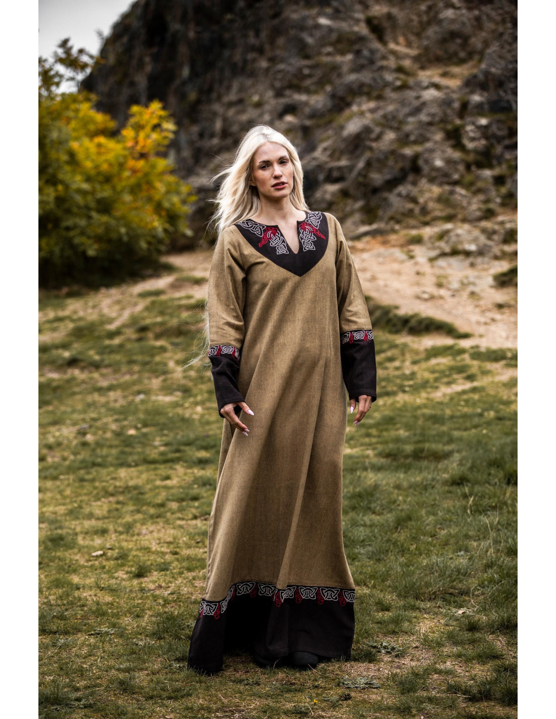 Se você valoriza peças com história, ao comprar o Vestido Viking Para Mulher modelo Idun com Bordados, bege você está escolhendo uma peça que funde estética rústica e refinamento contemporâneo, projetada para quem busca autenticidade em seu vestuário.