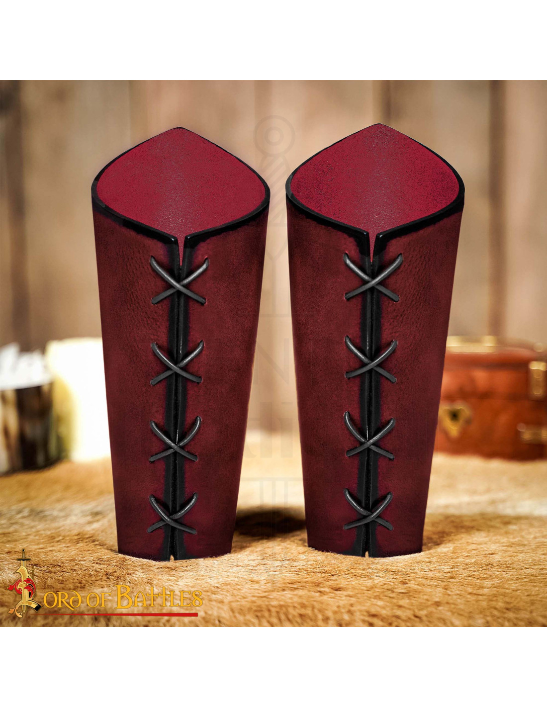 Mais além do que é visível, seu design cônico oferece uma cobertura que protege a parte superior do antebraço sem limitar a mobilidade no pulso, facilitando o manuseio do arco ou da espada com naturalidade. O material semirrígido aporta proteção contra esfoladuras e impactos leves, enquanto os cordões de ajuste permitem um encaixe personalizado, confortável e seguro para diferentes anatomias, melhorando a confiança em combate ou em cena.